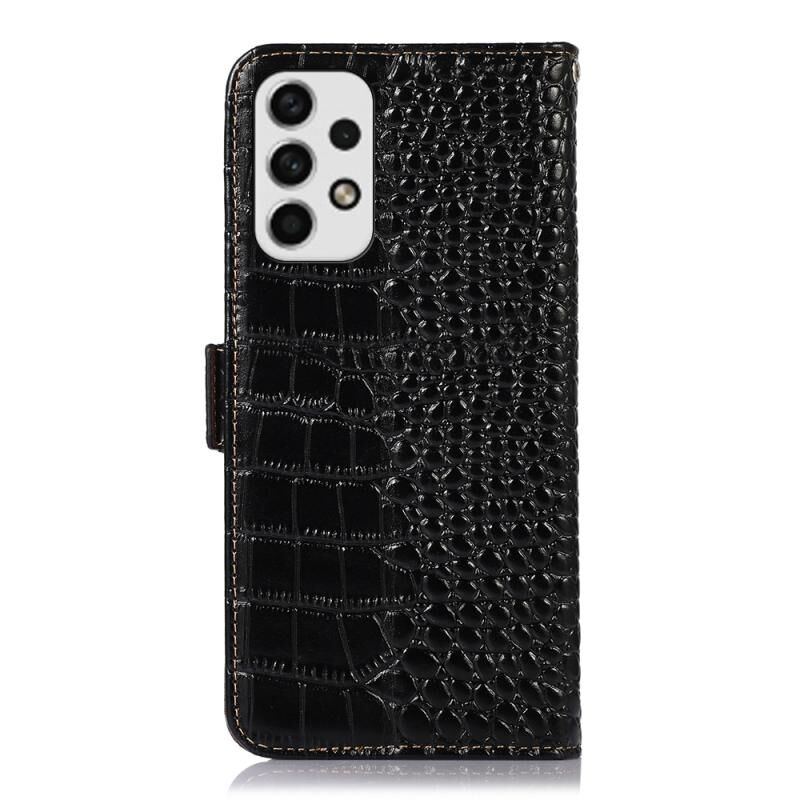 Θήκη τηλεφώνου από γνήσιο δέρμα αγελάδας με επικάλυψη κροκόδειλου για Samsung Galaxy A23 4G (Μαύρο)