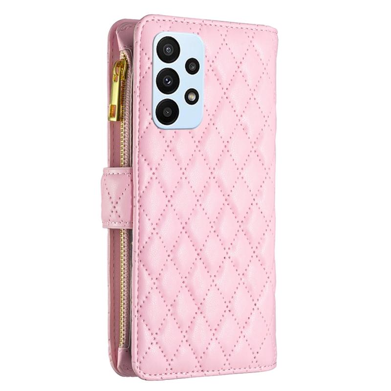 For Samsung Galaxy A23 4G Diamond Lattice Zipper Wallet Leather Flip Phone Case(Pink)