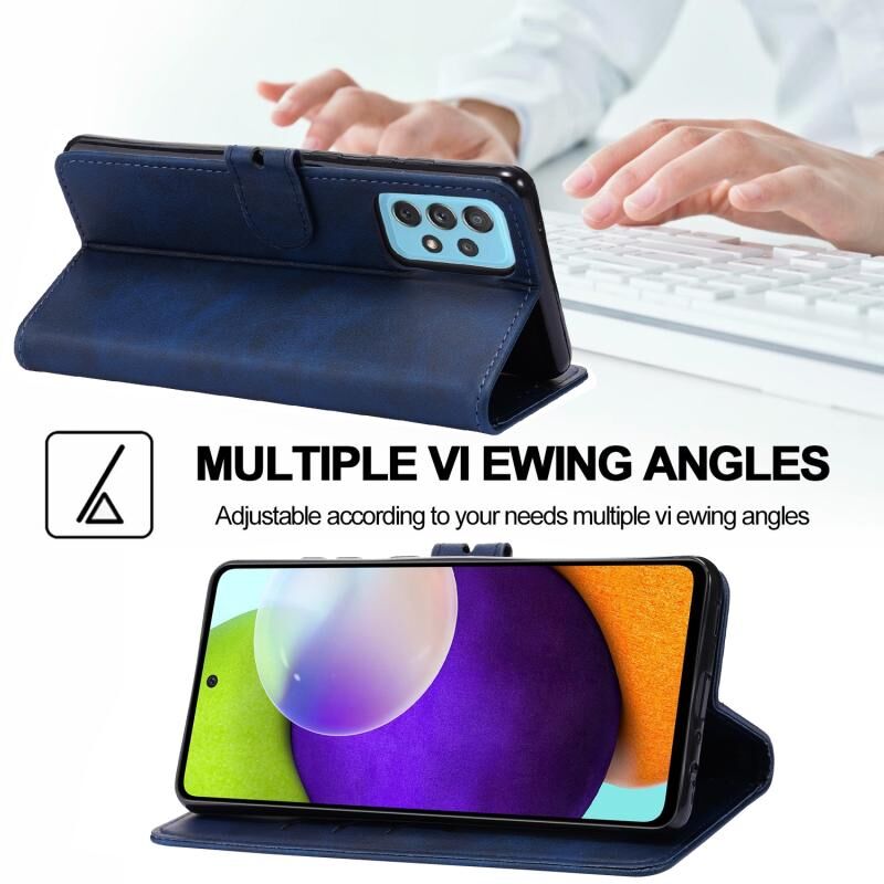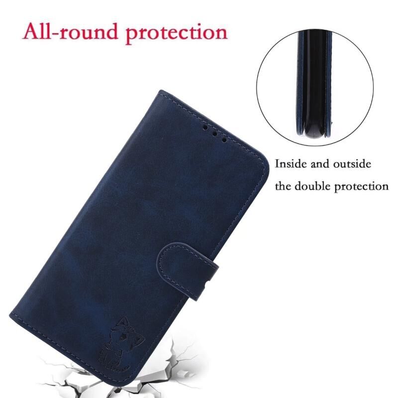 Θήκη τηλεφώνου δερμάτινη με ανάγλυφο σχέδιο χαρούμενης γάτας για Samsung Galaxy A23 4G (Γκρι)