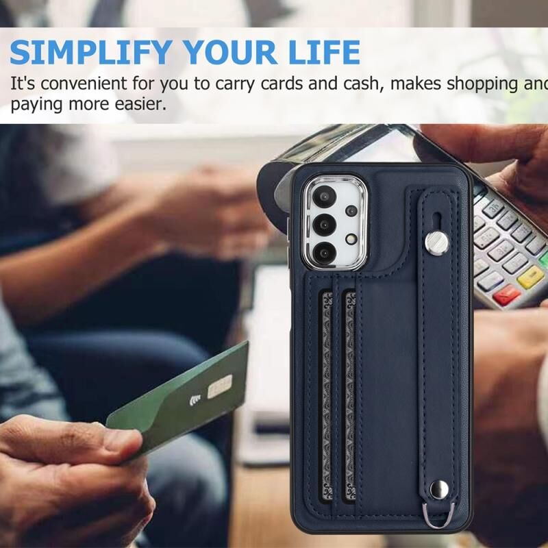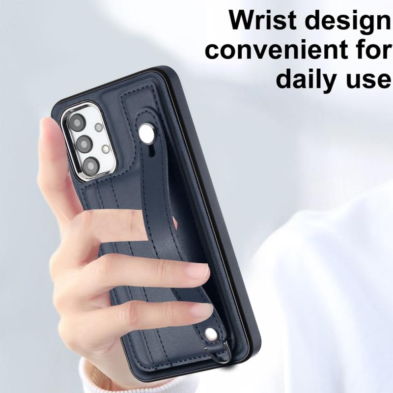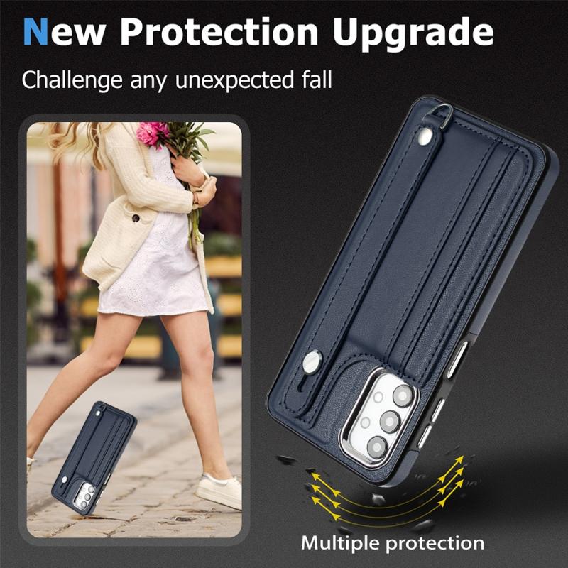 Θήκη κινητού τηλεφώνου από δέρμα ανθεκτική στις κρούσεις για Samsung Galaxy A23 4G / F23 5G / M23 5G με λουρί καρπού (Μπλε)