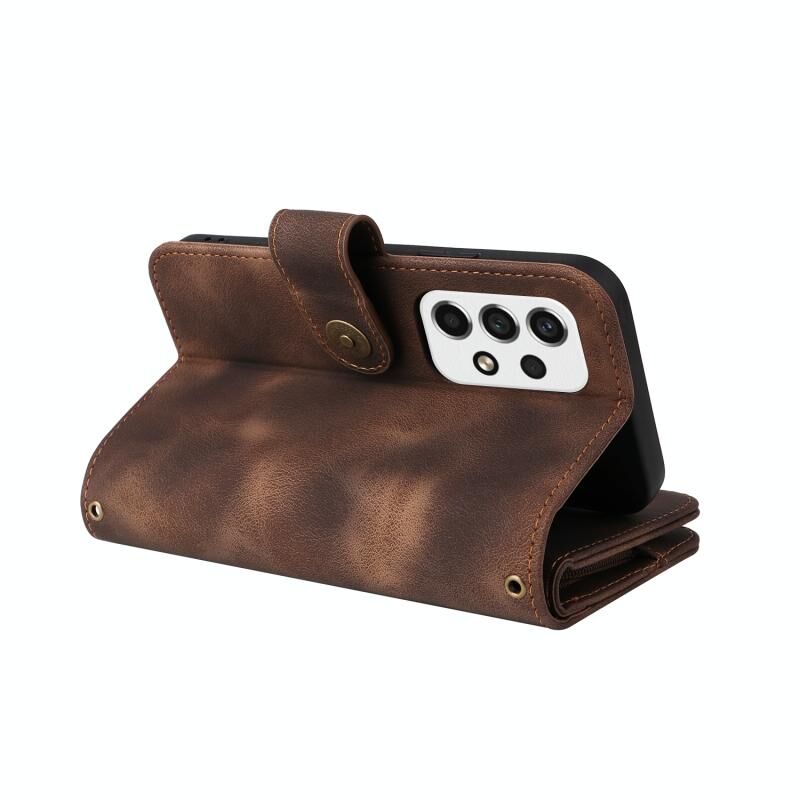 Για Samsung Galaxy A23 4G πολυλειτουργική κάρτα Slot φερμουάρ πορτοφόλι δερμάτινη θήκη τηλεφώνου (καφέ)