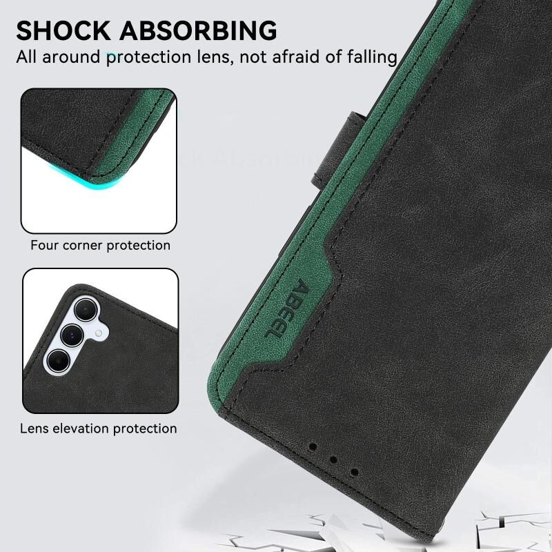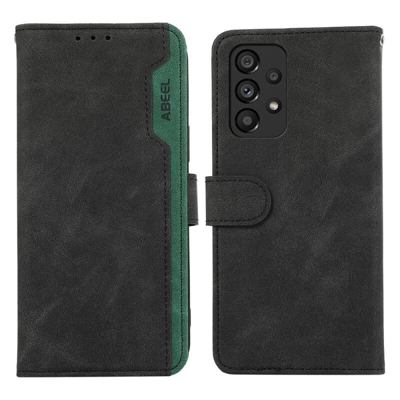 Θήκη τηλεφώνου Samsung Galaxy A23 5G / 4G ABEEL με μαγνητικό κλείσιμο, δερμάτινη, με χρωματικούς συνδυασμούς και προστασία RFID (Ροζ-Κυανό)