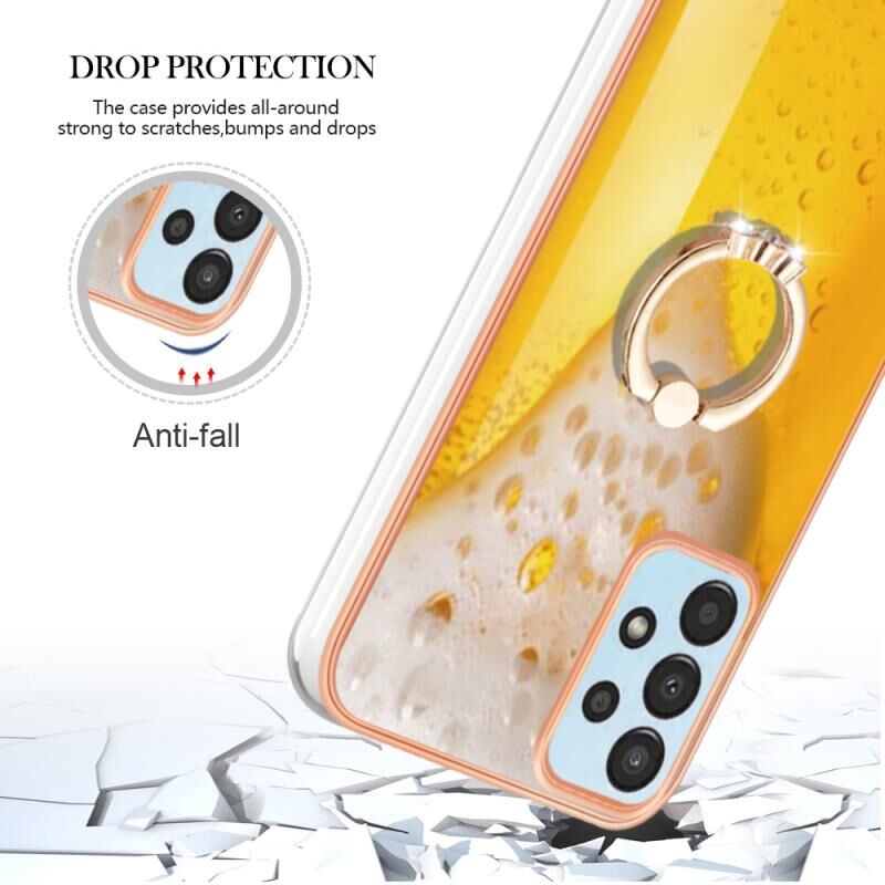 Θήκη τηλεφώνου με δακτύλιο στήριξης και ηλεκτρολυτική επιμετάλλωση διπλής όψης IMD για Samsung Galaxy A23 5G / 4G (Μπύρα βαρελίσια)