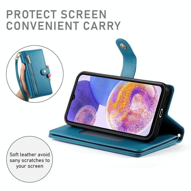 Για Samsung Galaxy A23 5G / 4G Nine Card-slot φερμουάρ πορτοφόλι τσάντα δερμάτινη θήκη τηλεφώνου (Μπλε)