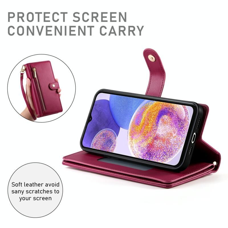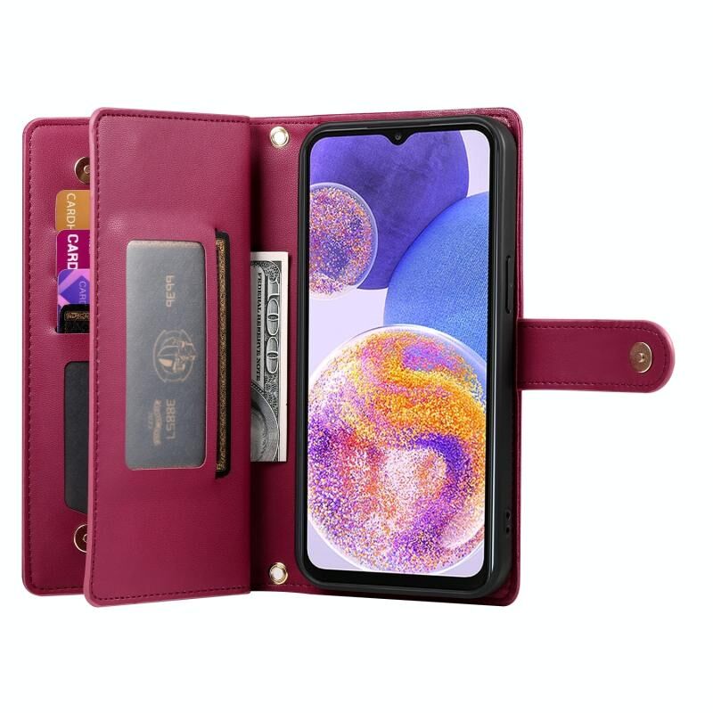 Για Samsung Galaxy A23 5G / 4G Nine Card-slot φερμουάρ πορτοφόλι τσάντα δερμάτινη θήκη τηλεφώνου (Κόκκινο)