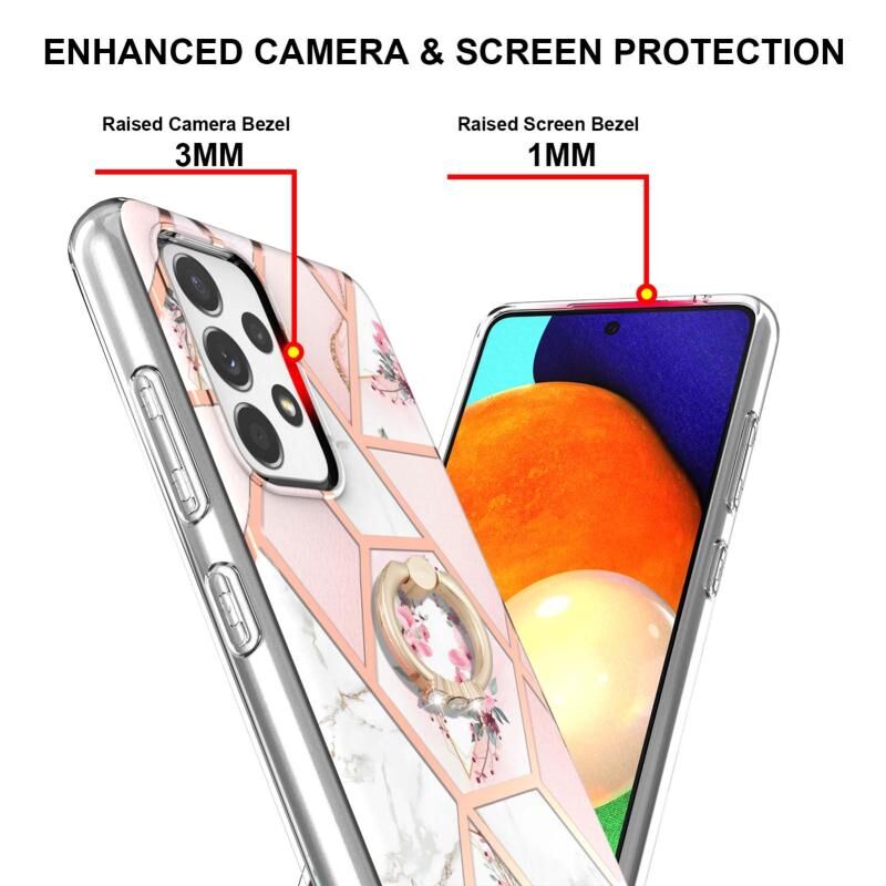 Θήκη για Samsung Galaxy A23 5G / 4G με σχέδιο μαρμάρου και λουλουδιών, από TPU με δακτύλιο στήριξης (Ροζ Λουλούδι)