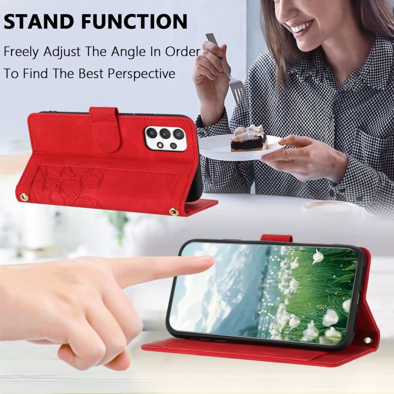 Θήκη τηλεφώνου δερμάτινη ανάγλυφη με σχέδιο τουλίπας και λουρί για Samsung Galaxy A23 5G / 4G (Ροζ)