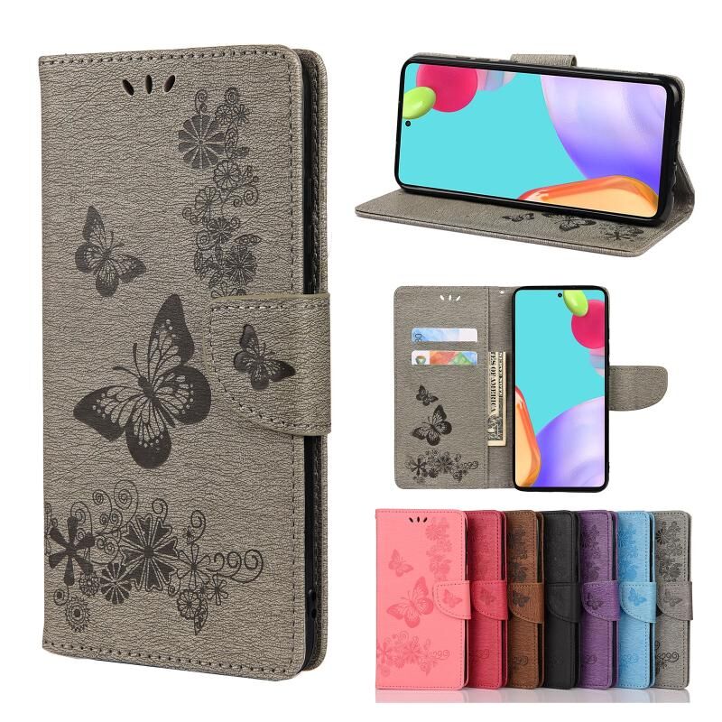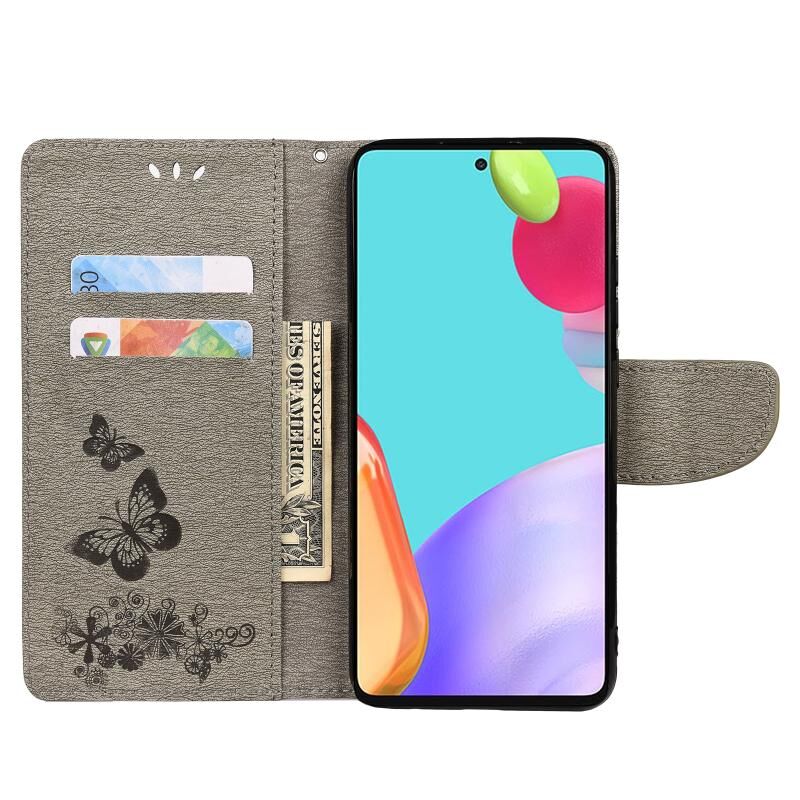 Για Samsung Galaxy A23 5G 5G Πεταλούδα ανάγλυφο οριζόντια Flip δερμάτινη θήκη τηλεφώνου με υποδοχή για κάρτες & κάτοχος (Γκρι)