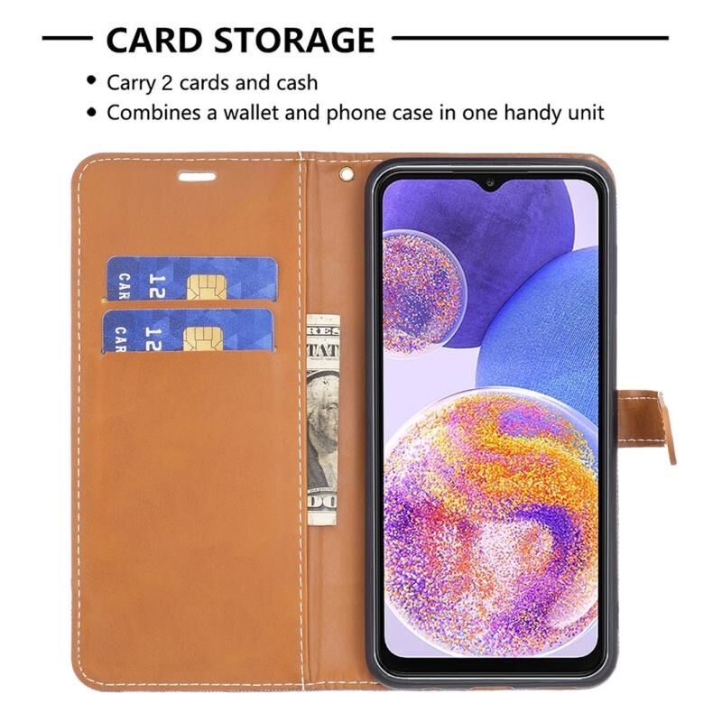 Για το Samsung Galaxy A23 5G χρώμα ταιριάζει Denim υφή δερμάτινη θήκη τηλεφώνου (καφέ)