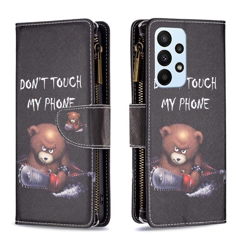 Θήκη τηλεφώνου Samsung Galaxy A23 5G από δέρμα με φερμουάρ και σχέδιο ζωγραφικής (Αρκούδα)