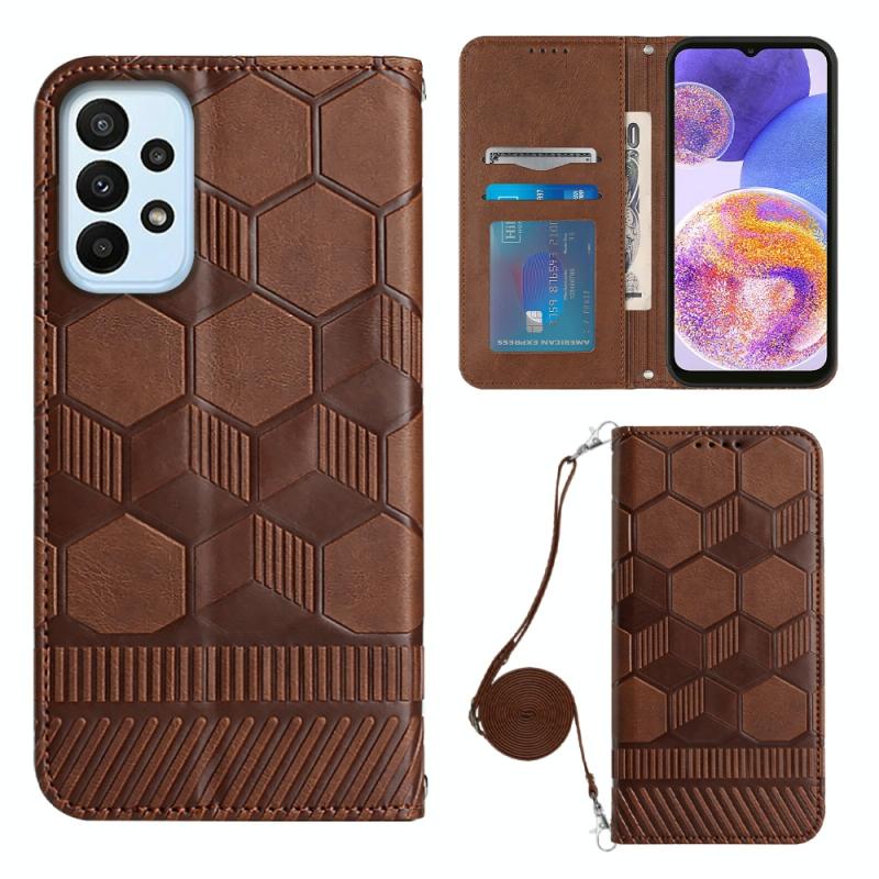 Θήκη κινητού τηλεφώνου Samsung Galaxy A23 5G, τύπου crossbody, με υφή ποδοσφαίρου, μαγνητική, από PU δέρμα (Καφέ)