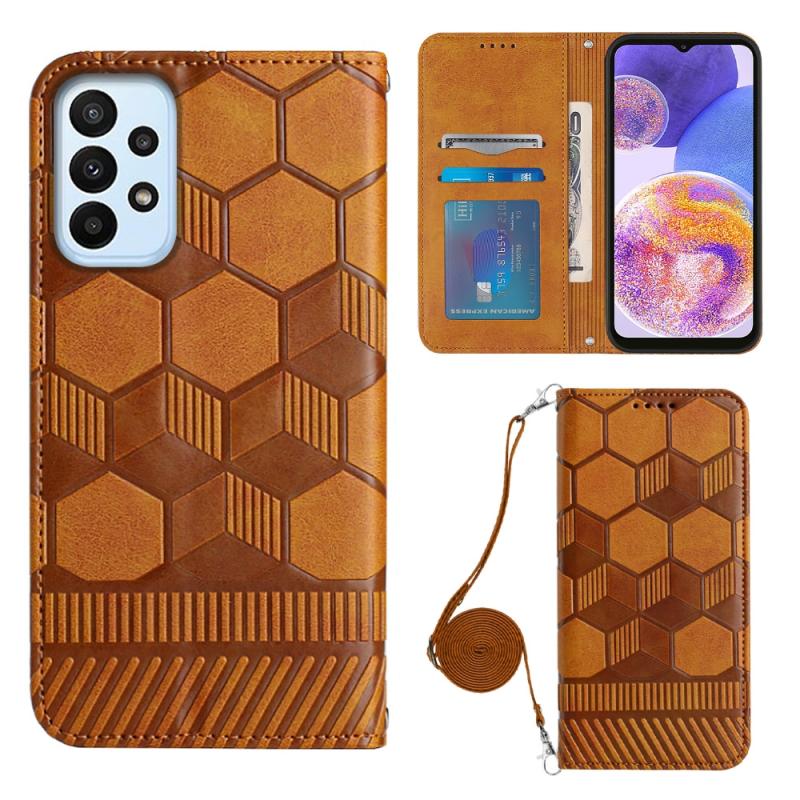 Θήκη κινητού τηλεφώνου Samsung Galaxy A23 5G, τύπου crossbody, με υφή ποδοσφαίρου, μαγνητική, από PU δέρμα (Χακί)