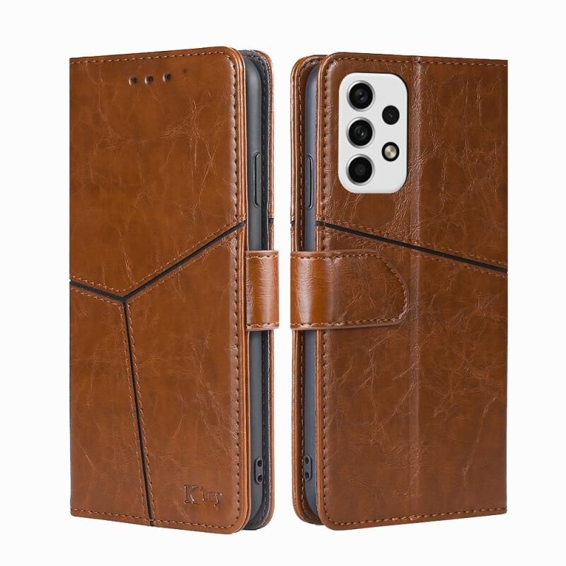 Για Samsung Galaxy A23 5G γεωμετρική ραφή οριζόντια Flip TPU + PU δέρμα τηλέφωνο υπόθεση (ανοιχτό καφέ)