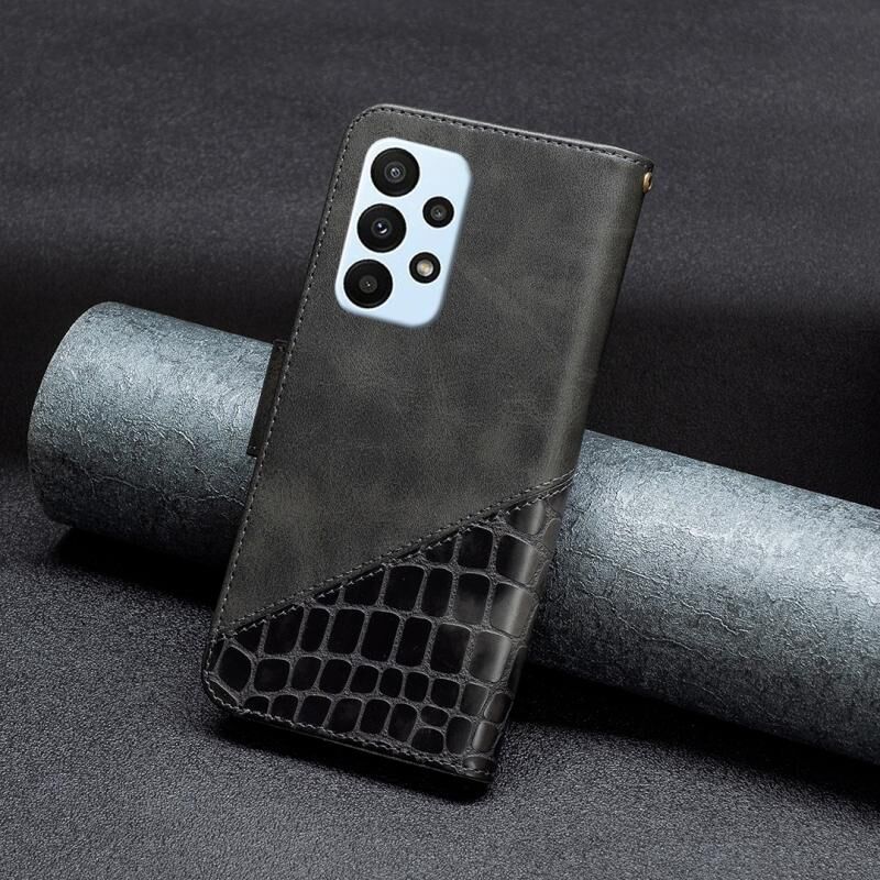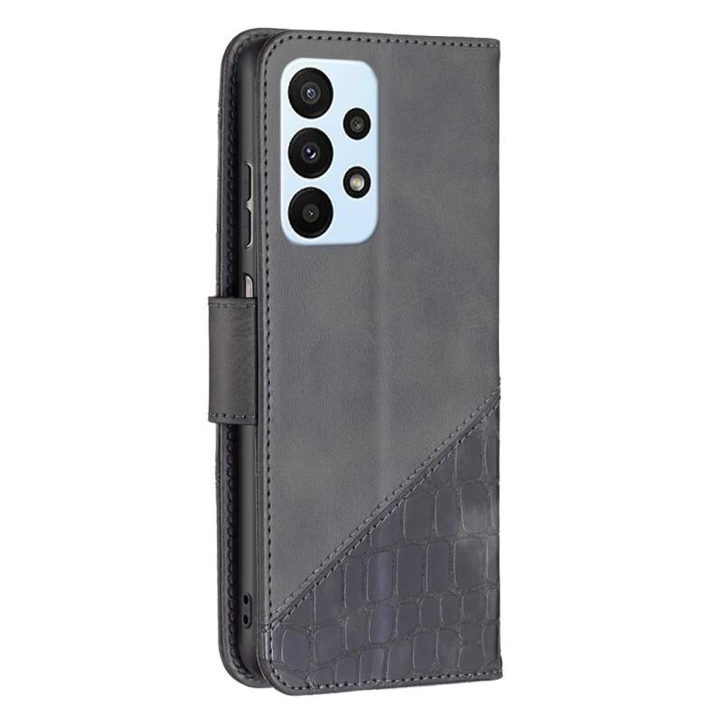 Θήκη τηλεφώνου από δέρμα με υφή κροκόδειλου, σε ταιριαστό χρώμα, για Samsung Galaxy A23 5G (Μαύρο)