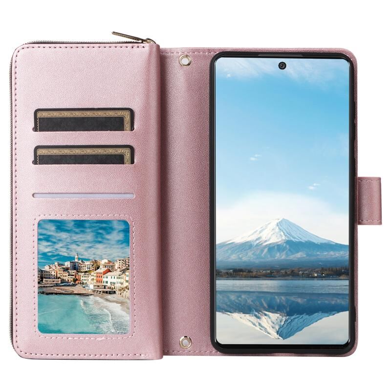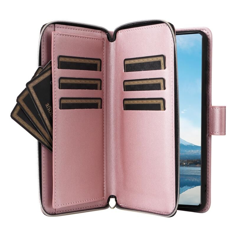 5. Πρακτική λειτουργία θήκης καρτών: Η υποδοχή κάρτας και η τσέπη πορτοφολιού με φερμουάρ και η θήκη μετρητών μπορούν να αποθηκεύσουν τις πιστωτικές σας κάρτες, τα μετρητά ή τα μικρά χαρτονομίσματα που χρειάζεστε καθημερινά.