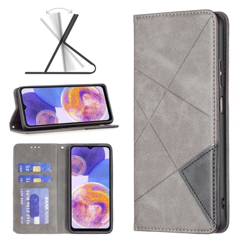 Για Samsung Galaxy A23 5G Prismatic Invisible μαγνητική δερμάτινη θήκη τηλεφώνου (Γκρι)