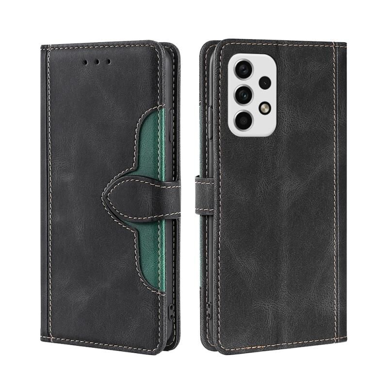 Για Samsung Galaxy A23 5G δέρμα αίσθηση άχυρο καπέλο μαγνητική πόρπη δερμάτινη θήκη τηλεφώνου (μαύρο)