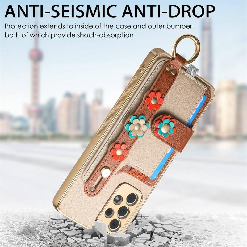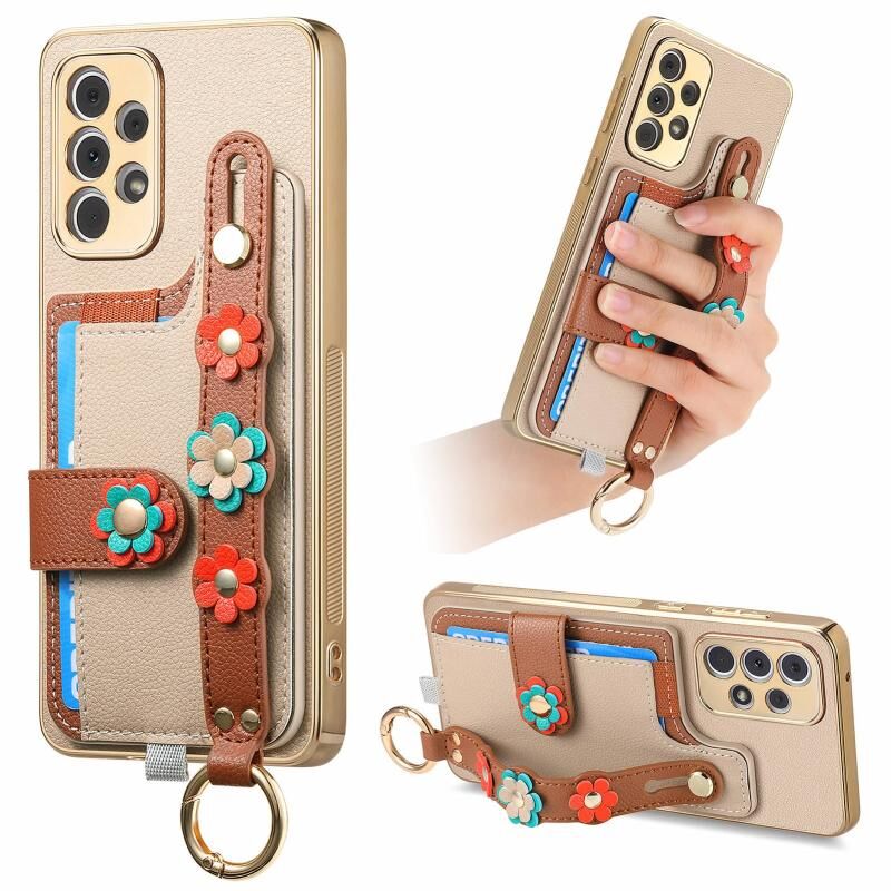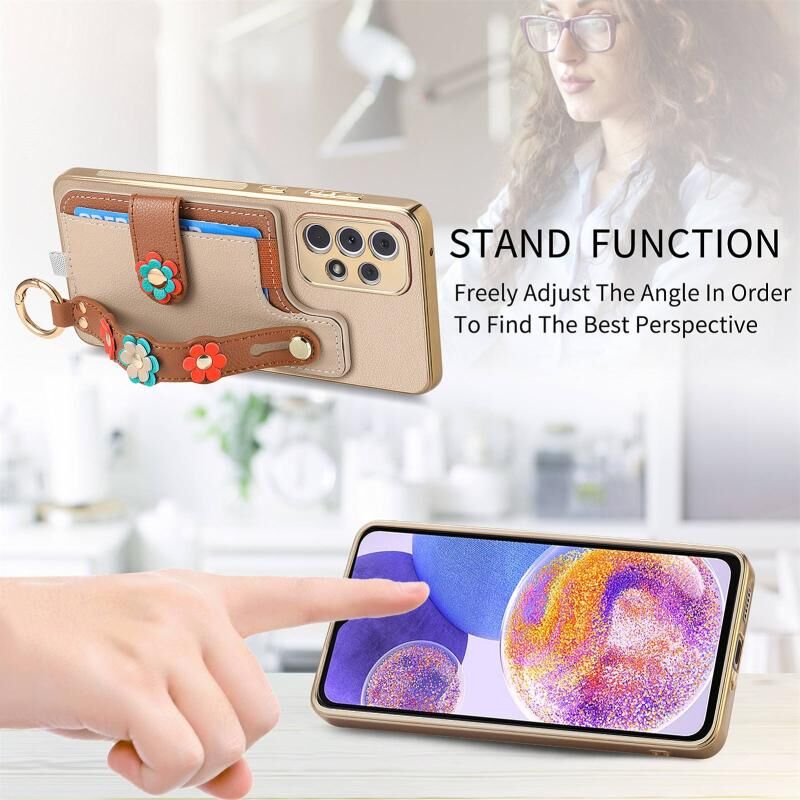 Για Samsung Galaxy A23 5G Στερεοσκοπική λουλούδια Wristband κάρτα τσάντα υπόθεση τηλεφώνου (Χακί)