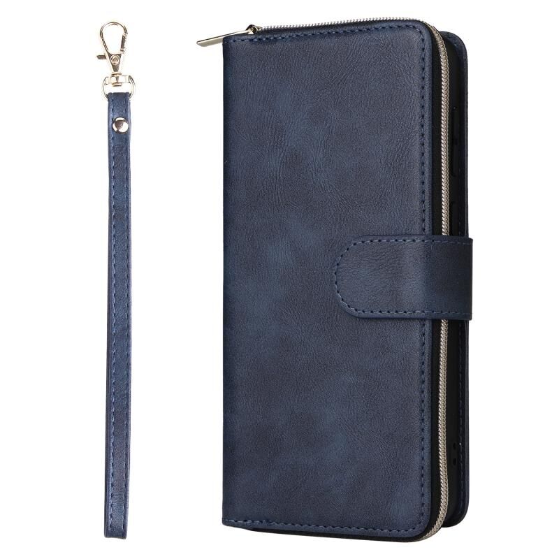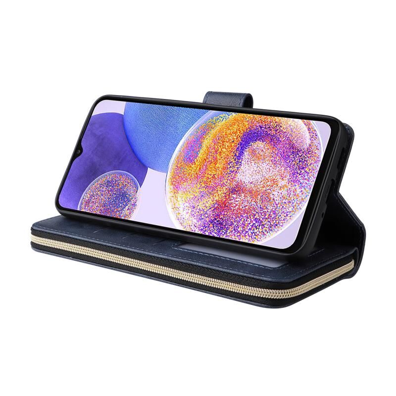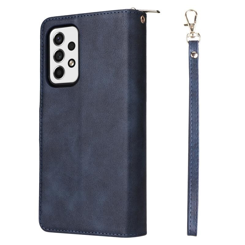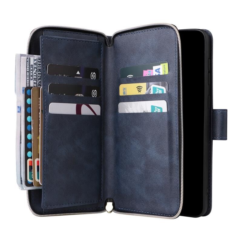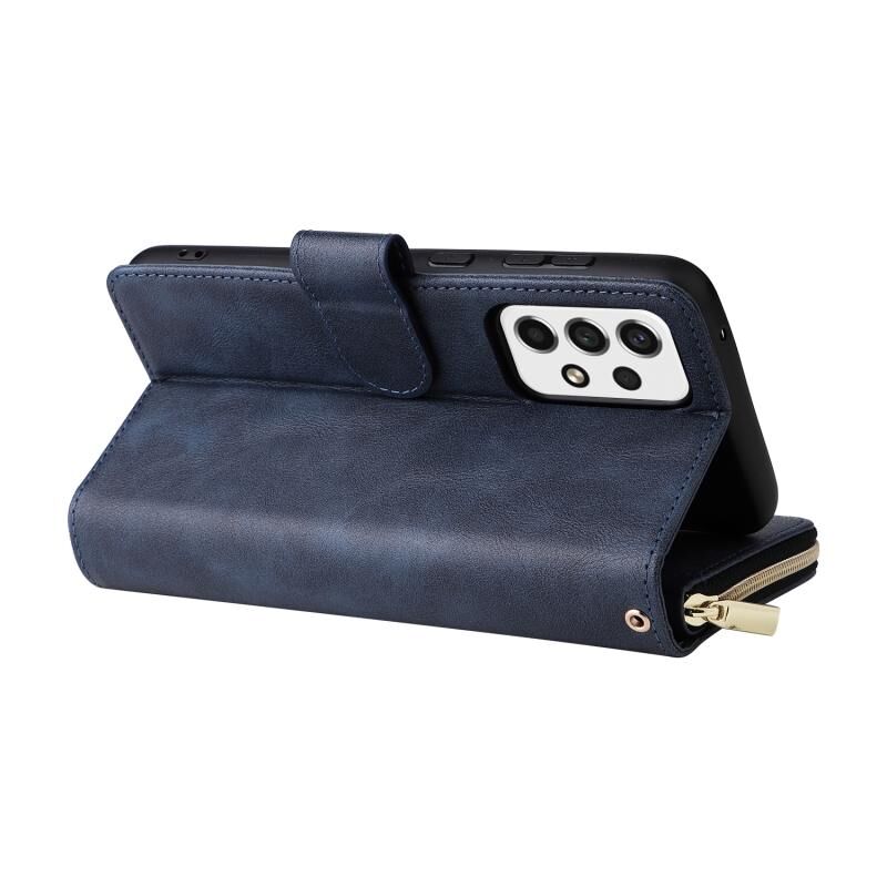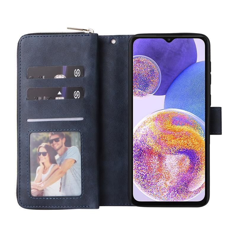 Για Samsung Galaxy A23 9 υποδοχές καρτών φερμουάρ πορτοφόλι τσάντα δερμάτινη θήκη τηλεφώνου (Μπλε)