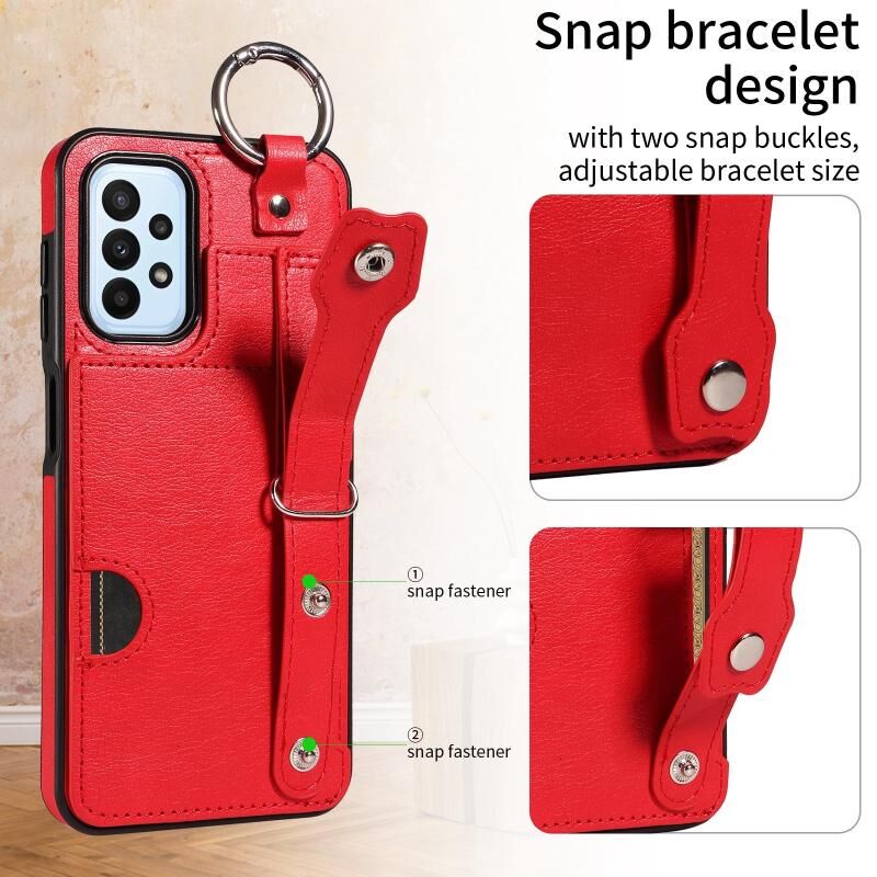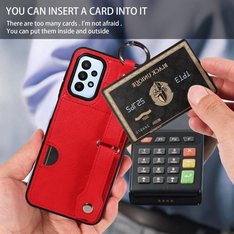 Για Samsung Galaxy A23 Calf υφή καρπού κάρτα Slot δαχτυλίδι υπόθεση τηλεφώνου (Κόκκινο)