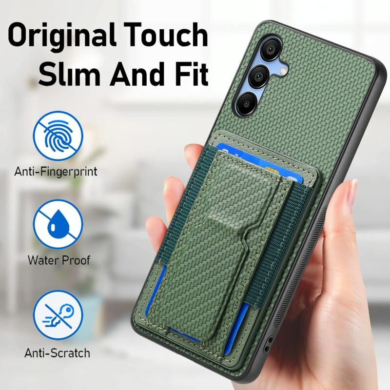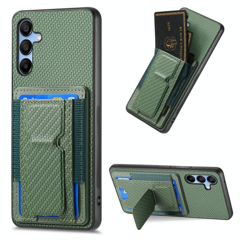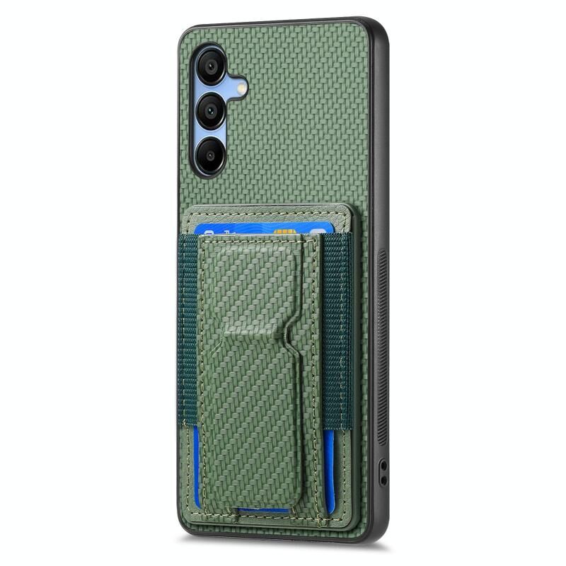 For Samsung Galaxy A23 Carbon Fiber Fold Stand Elastic Card Bag Phone Case(Green)