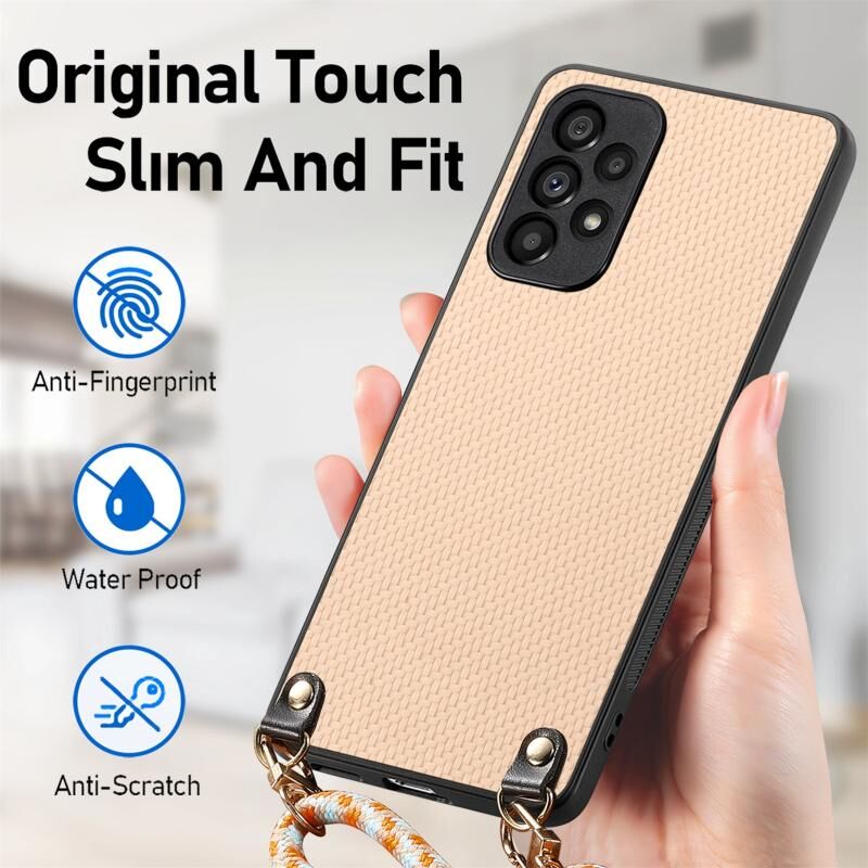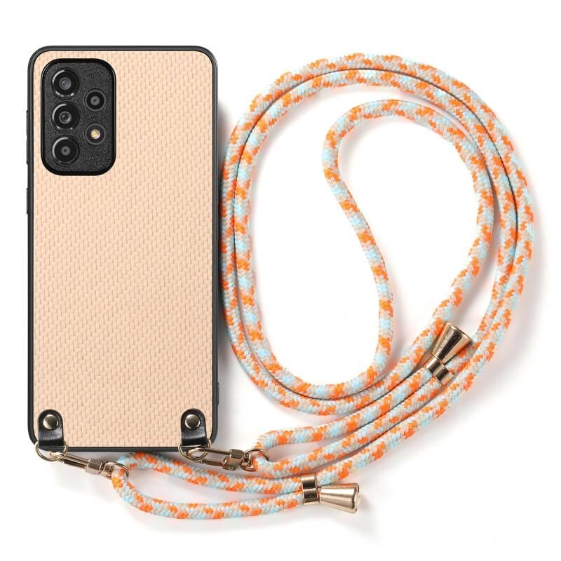 Για Samsung Galaxy A23 Carbon Fiber Texture δέρμα πίσω κάλυμμα υπόθεση τηλεφώνου με λουράκι σταυρού (Χακί)