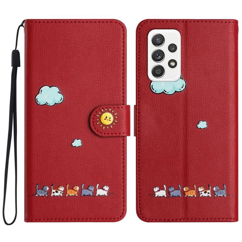 Θήκη τηλεφώνου Samsung Galaxy A23 από δέρμα με σχέδια γάτας (Κόκκινο)