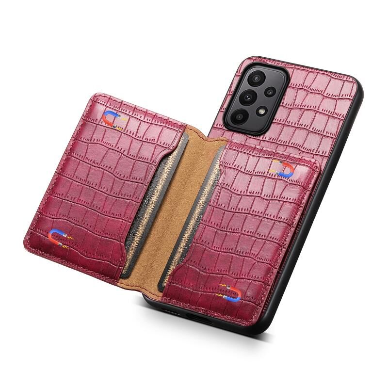 Θήκη κινητού τηλεφώνου Samsung Galaxy A23 με υφή κροκόδειλου και σχέδιο θήκης καρτών, πλήρης κάλυψη (Μαύρο)