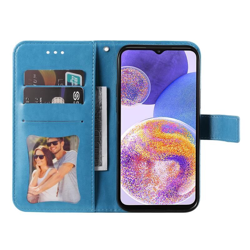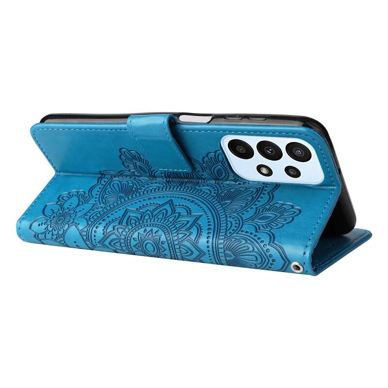 Για Samsung Galaxy A23 /Galaxy M23/Galaxy F23 Θήκη Δέρματος Οριζόντιας Αναδίπλωσης με ανάγλυφο σχέδιο 7 Πετάλων (Μπλε)