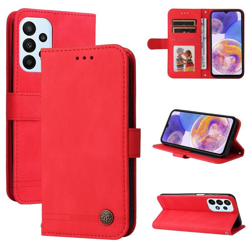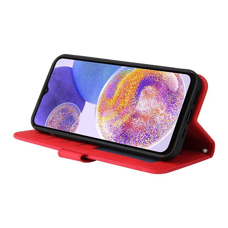 Θήκη δέρματος οριζόντιας αναδίπλωσης με μεταλλικά κουμπιά και αίσθηση δέρματος για Samsung Galaxy A23 / Galaxy M23 / Galaxy F23 (Μπλε)