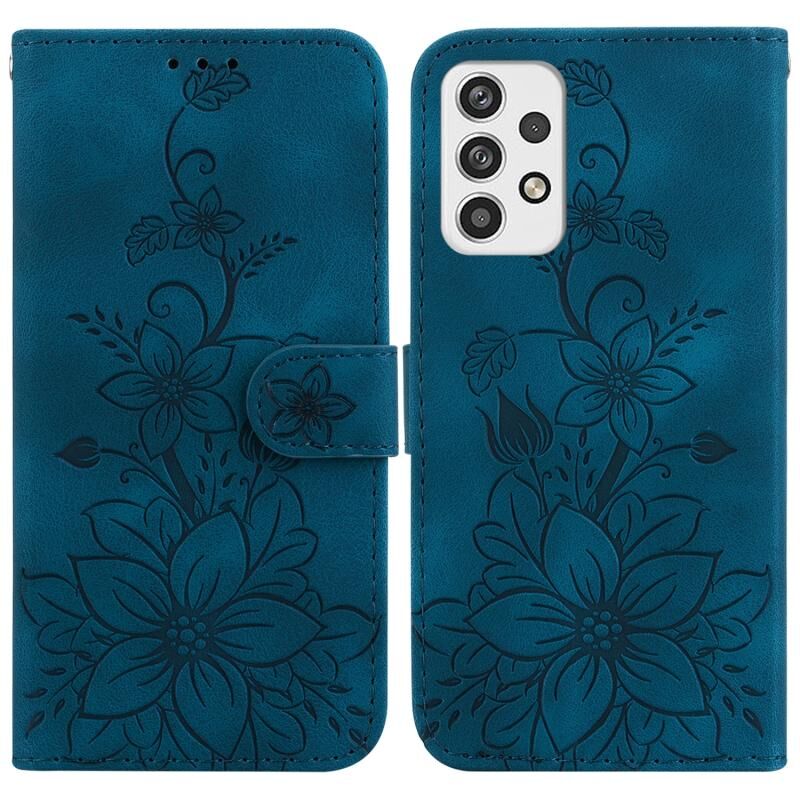 Θήκη τηλεφώνου Samsung Galaxy A23 Lily με ανάγλυφο δέρμα (Σκούρο μπλε)