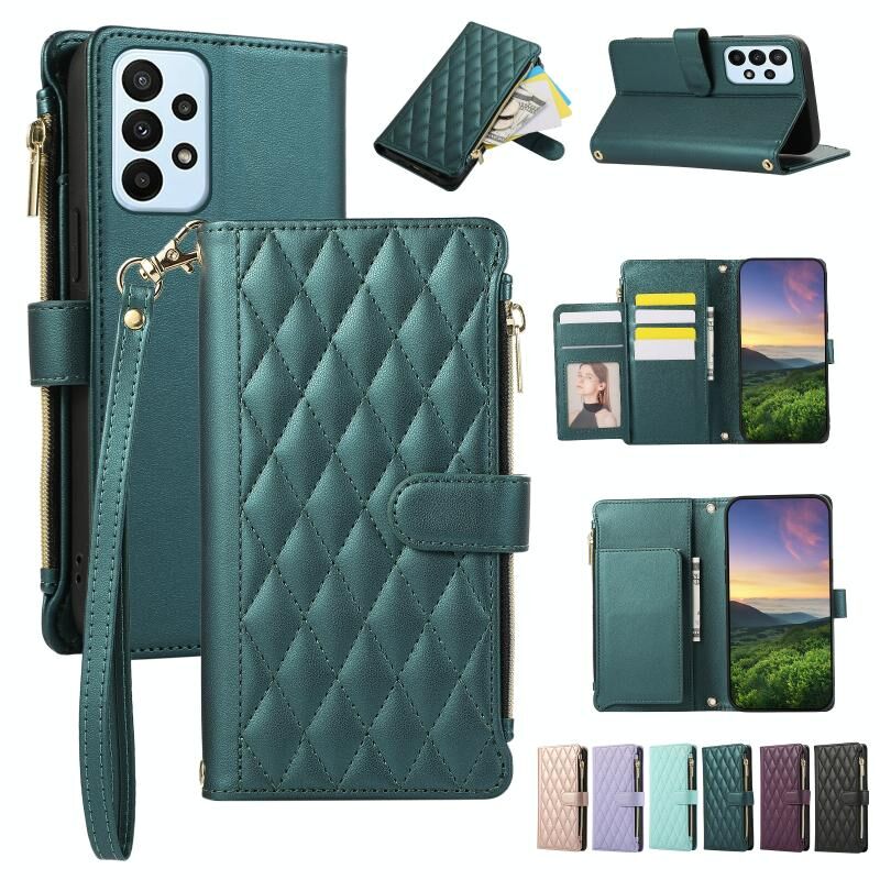 Θήκη τηλεφώνου Samsung Galaxy A23 / M13 4G με φερμουάρ και σχέδιο ρόμβου, από δέρμα (Μωβ)