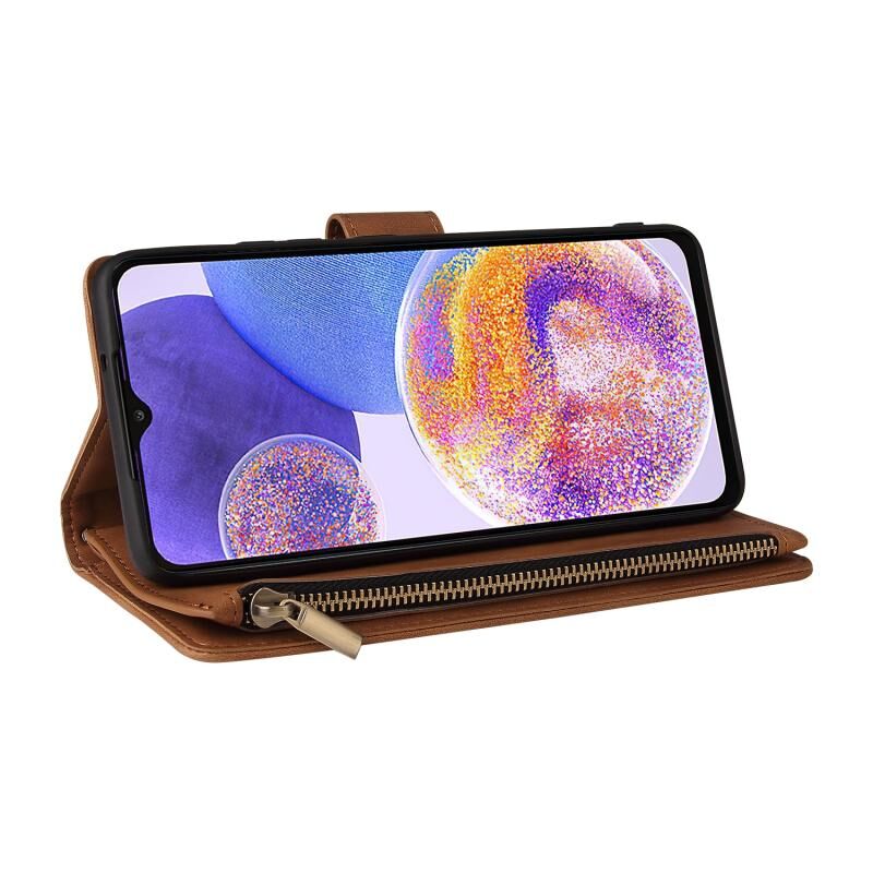 Για Samsung Galaxy A23 Πολυλειτουργικό παγωμένο φερμουάρ πορτοφόλι δερμάτινη θήκη τηλεφώνου (Καφέ)