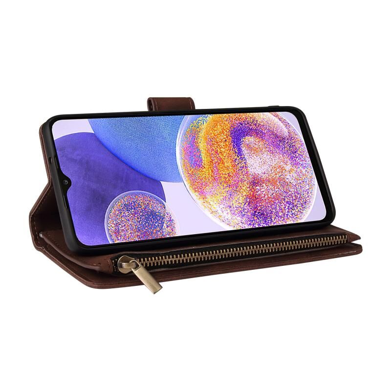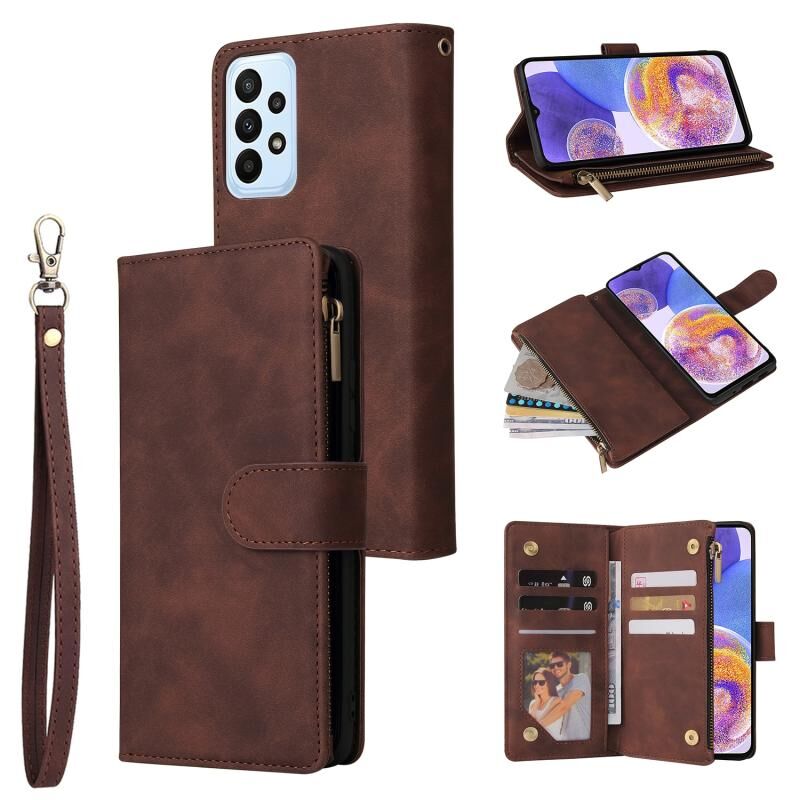 Για Samsung Galaxy A23 Πολυλειτουργικό παγωμένο φερμουάρ πορτοφόλι δερμάτινη θήκη τηλεφώνου (Καφέ)