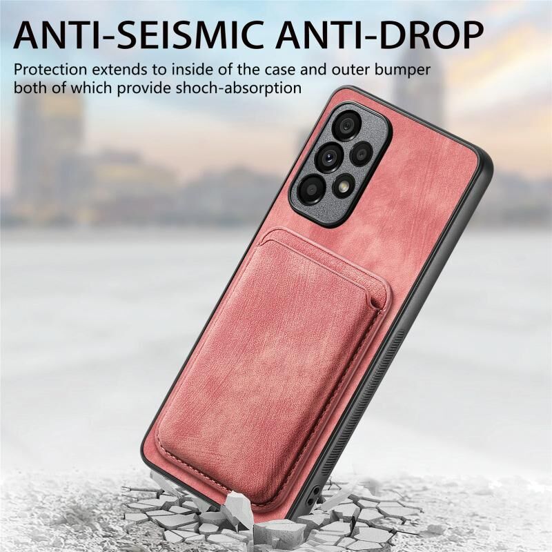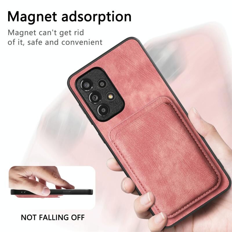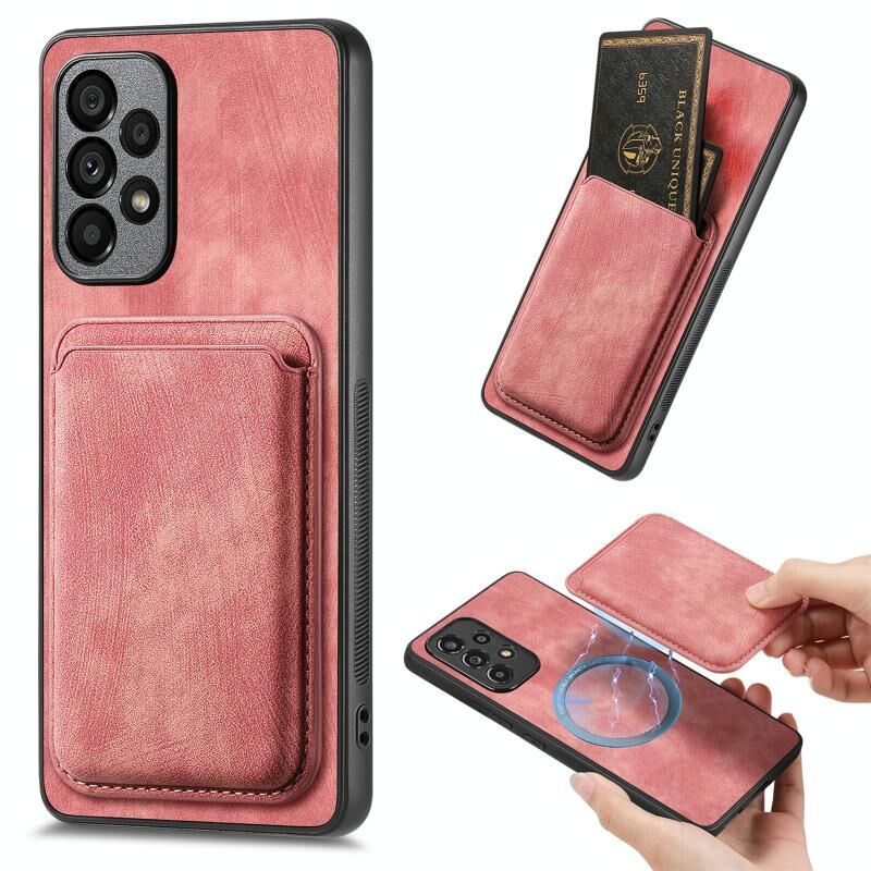 Για Samsung Galaxy A23 Ρετρό δερμάτινη τσάντα κάρτα μαγνητική θήκη τηλεφώνου (ροζ)