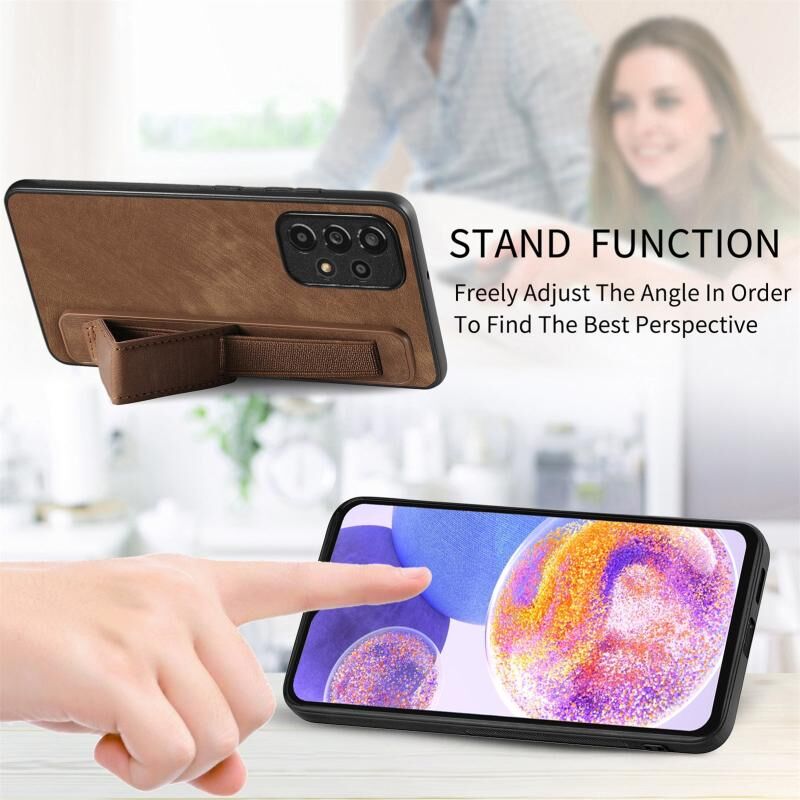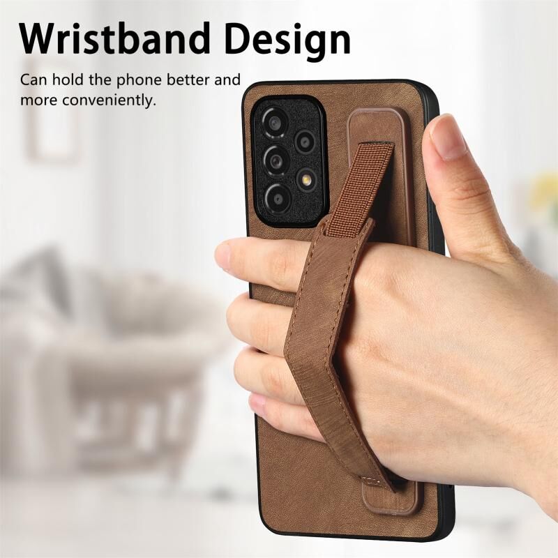 Για Samsung Galaxy A23 Ρετρό Wristband κάτοχος δέρμα πίσω υπόθεση τηλεφώνου (καφέ)