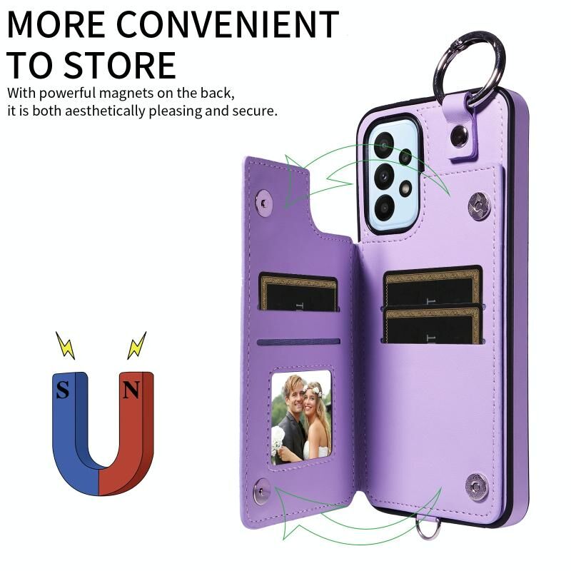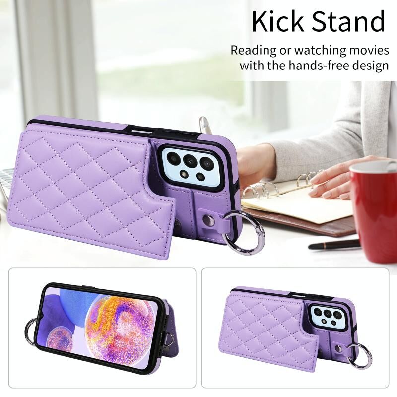 Για Samsung Galaxy A23 Rhombic υφή κάρτα τσάντα υπόθεση τηλεφώνου με σύντομο κορδόνι (μωβ)