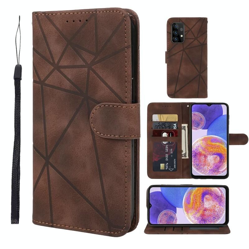 Θήκη τηλεφώνου Samsung Galaxy A23 με δερμάτινη υφή, γεωμετρικά σχέδια (Μαύρο)