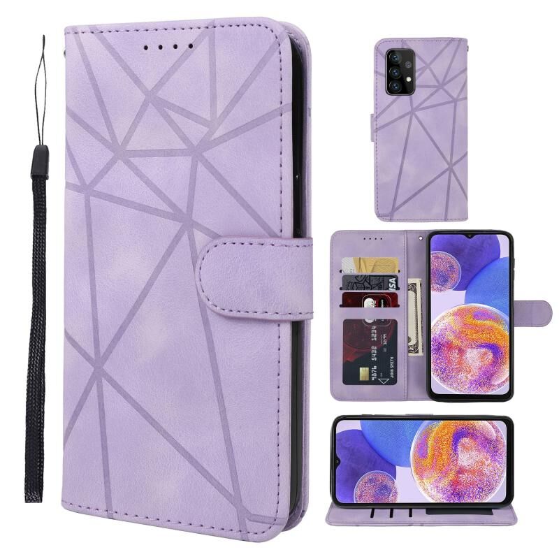 Θήκη τηλεφώνου Samsung Galaxy A23 με δερμάτινη υφή, γεωμετρικά σχέδια (Μαύρο)