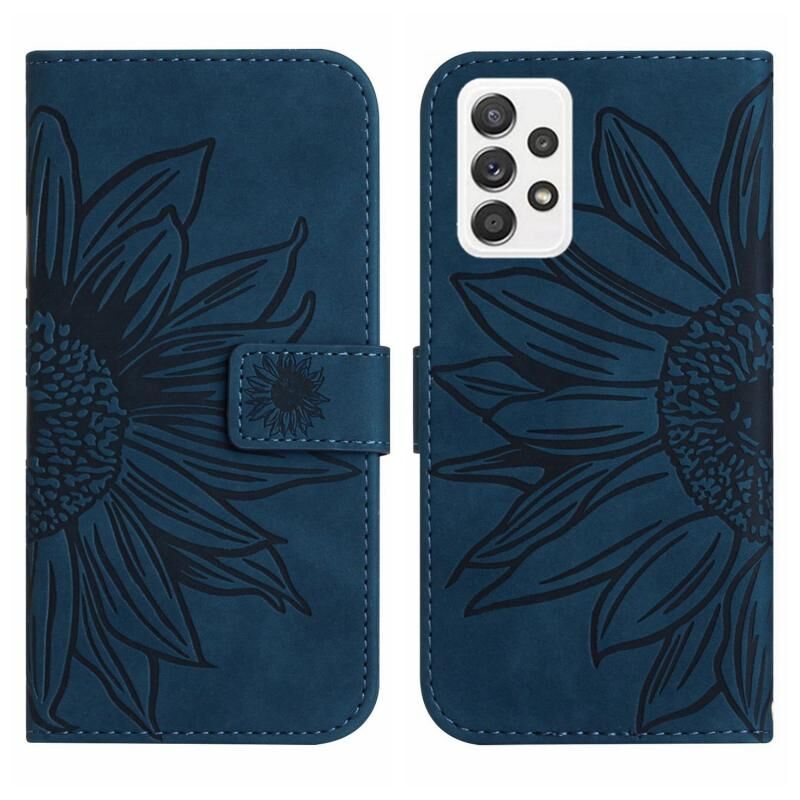 Για το Samsung Galaxy A23 δέρμα αίσθηση Sun Flower μοτίβο Flip δέρμα τηλέφωνο υπόθεση με κορδόνι (μπλε)