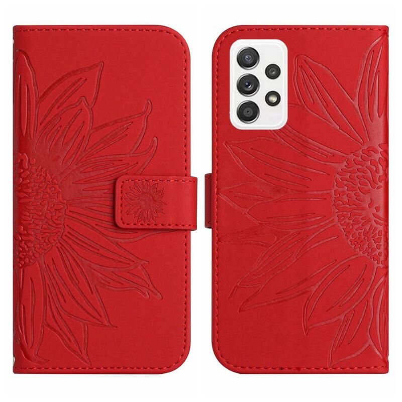 Για το Samsung Galaxy A23 δέρμα αίσθηση Sun Flower μοτίβο Flip δέρμα τηλέφωνο υπόθεση με κορδόνι (κόκκινο)