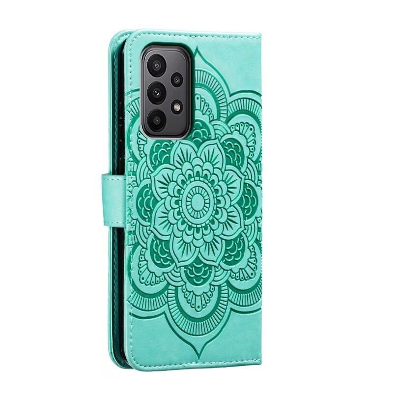 Θήκη δερμάτινη για Samsung Galaxy A23 με ανάγλυφο σχέδιο Sun Mandala (Κόκκινη)