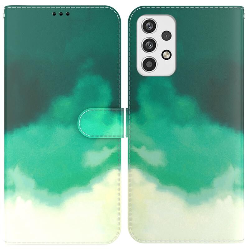 Για Samsung Galaxy A23 Υδατογραφία μοτίβο οριζόντια Flip υπόθεση τηλεφώνου δέρμα (κυανό πράσινο)