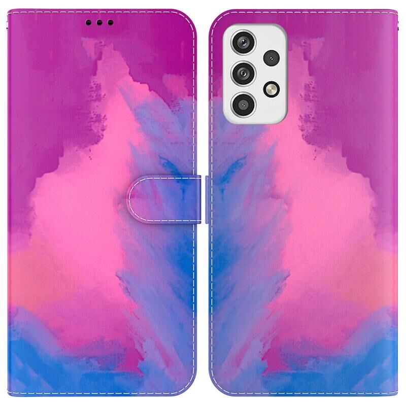 Για Samsung Galaxy A23 Υδατογραφία μοτίβο οριζόντια Flip υπόθεση τηλεφώνου δέρμα (μοβ κόκκινο)