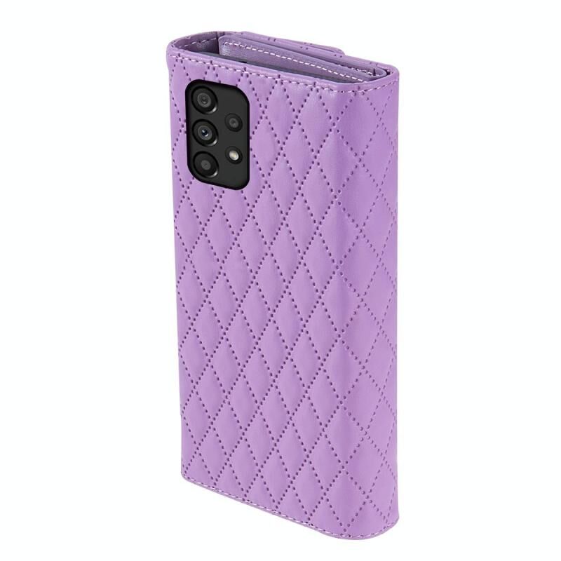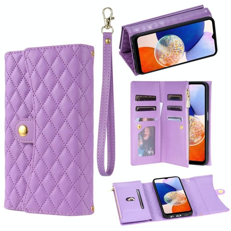 Για Samsung Galaxy A23 φερμουάρ πολλαπλών καρτών πορτοφόλι ρομβοειδή δερμάτινη θήκη τηλεφώνου (μωβ)