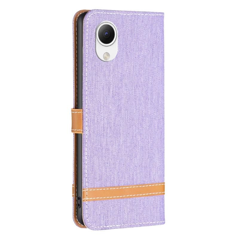 Για Samsung Galaxy A23e 5G Color Block Denim Texture δερμάτινη θήκη τηλεφώνου (μωβ)