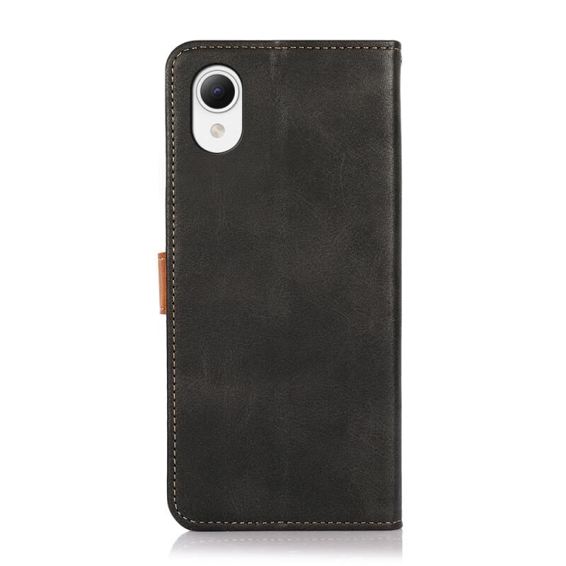 Θήκη τηλεφώνου από δέρμα με διχρωμία και υφή δέρματος αγελάδας KHAZNEH για Samsung Galaxy A23e/A23 έκδοση JP (Μαύρο)