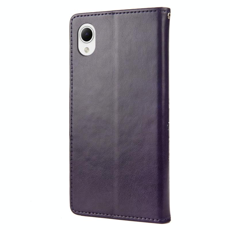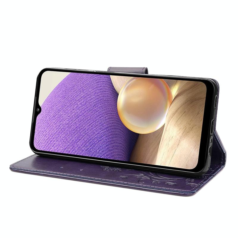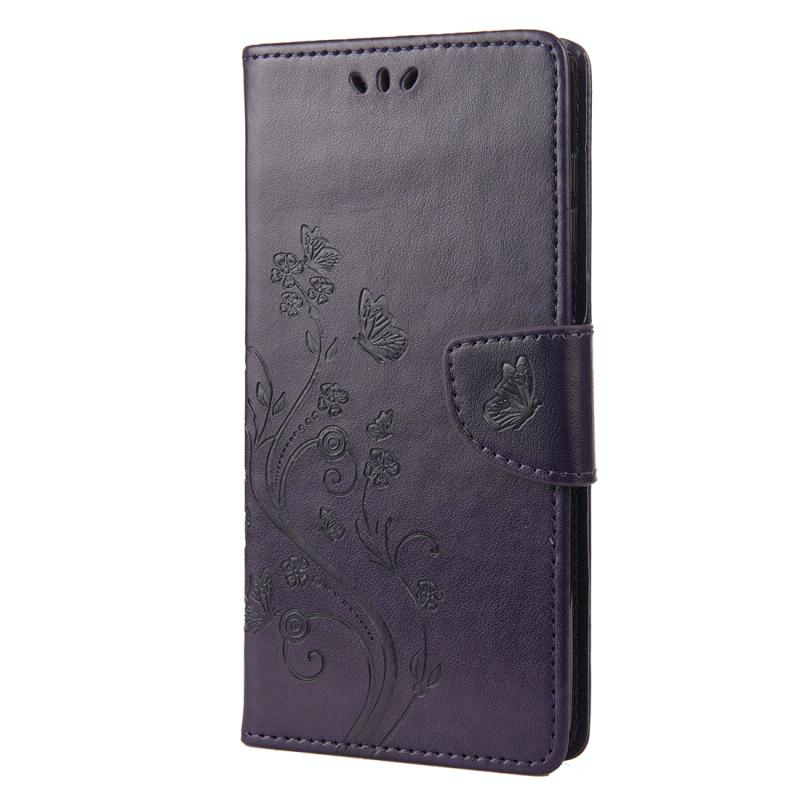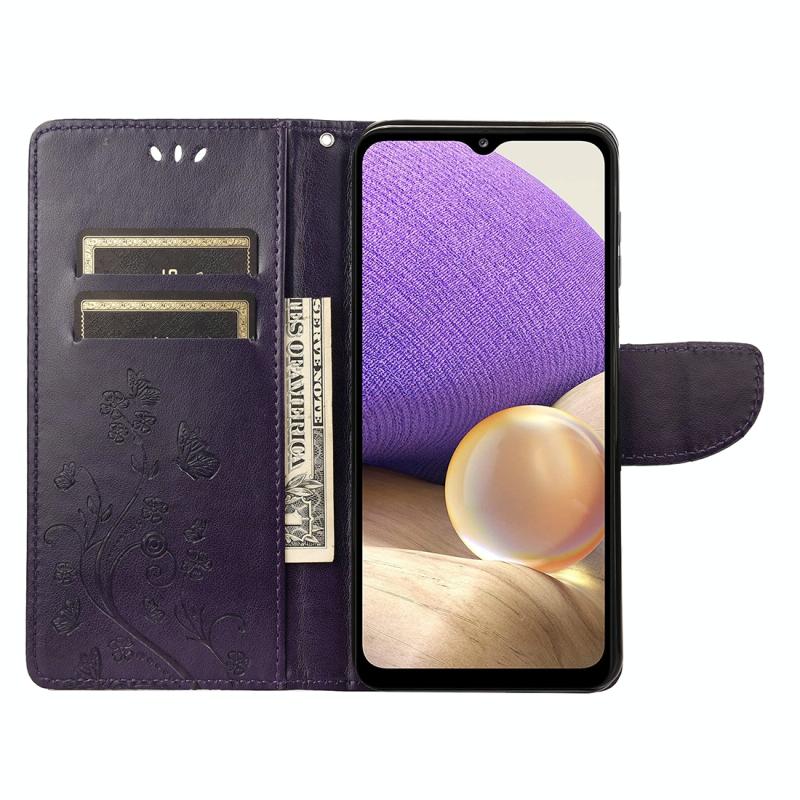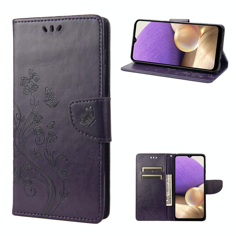 Θήκη τηλεφώνου Samsung Galaxy A23e / A23s, δερμάτινη, με σχέδιο πεταλούδας και λουλουδιών (Σκούρο μωβ)