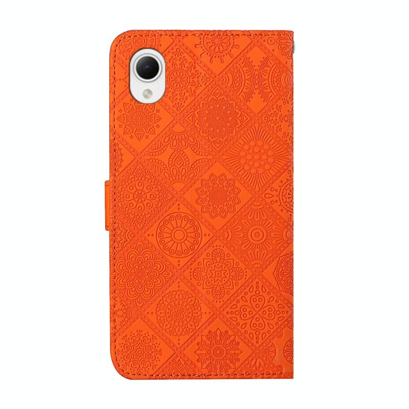 Θήκη τηλεφώνου Samsung Galaxy A23e από δέρμα με ανάγλυφο εθνοτικό σχέδιο (Λευκό)