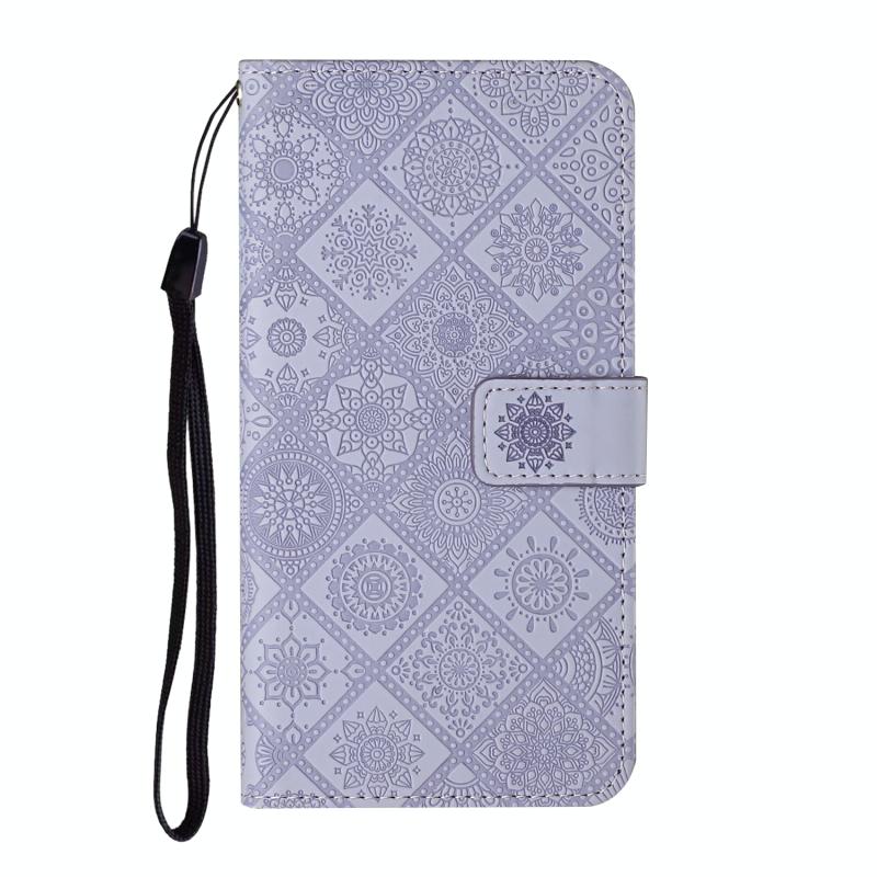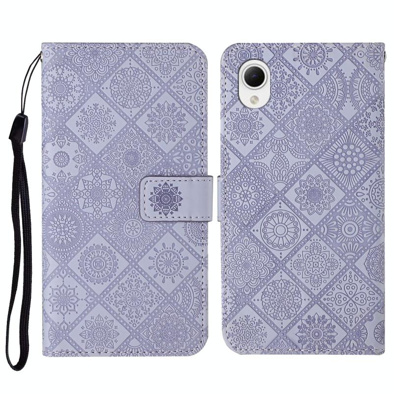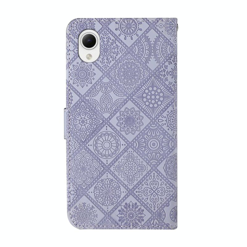 Θήκη τηλεφώνου Samsung Galaxy A23e από δέρμα με ανάγλυφο εθνοτικό σχέδιο (Μωβ)
